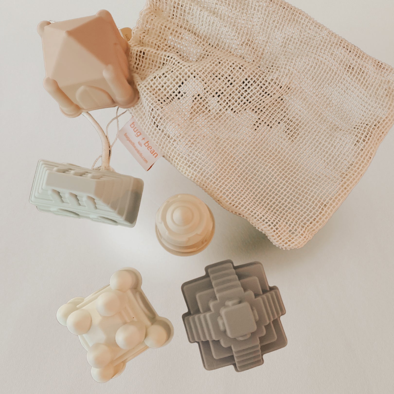 Our set comes with a soft mesh bag for easy storage. Our set is not only great for outdoor adventures but can be used at bath time too!