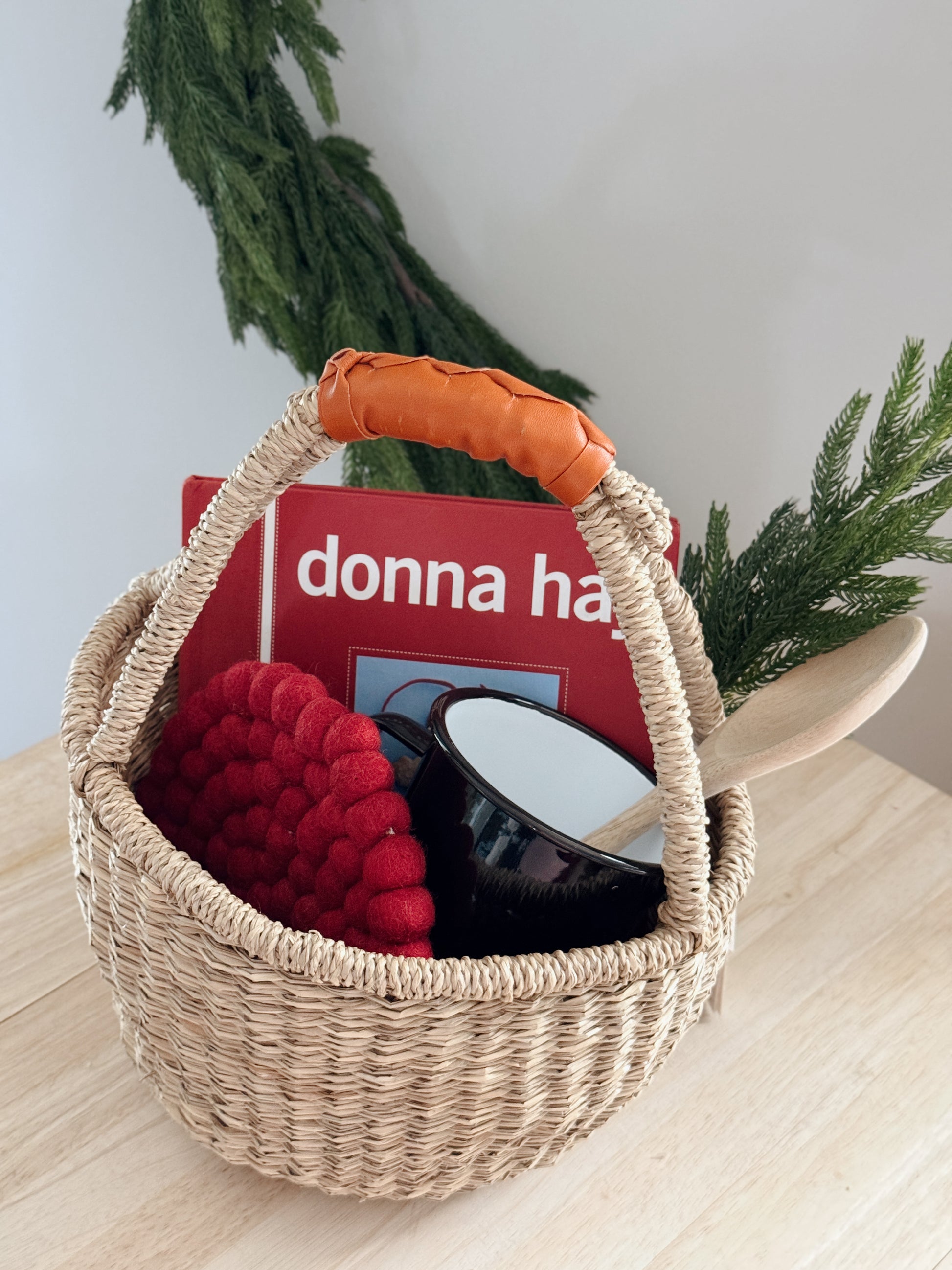 This season, let Grace & Company do the heavy lifting! Introducing our curated Holiday Gift Box featuring an Olli Ella Australian-made Midi Bolga basket brimming with treasures. Inside, discover a vintage Donna Hay "Simple Essential Christmas "cookbook to spark culinary inspiration, a FalconWare ,London-made enamelware 2 pint jug paired with a wooden spoon for kitchen charm, and a handcrafted trivet made in Nepal by a Women's Cooperative. Each piece tells a story of artisanal care and global craftsmanship. Perfect for the mom who appreciates beauty with purpose, this gift box celebrates thoughtful design, ethical making, and the joy of giving something truly special. Skip the stress—we've curated the magic for you.